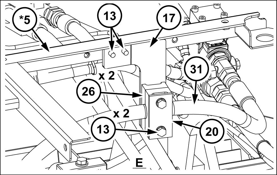 Instale soporte (17) bastidor (*5) con dos nos SEMS (13) Fije manguito hidráulico (31) con las dos ras (26) e instale placa (20) con dos pernos SEMS (13) para fijar las SMIL15CEX8812AB
