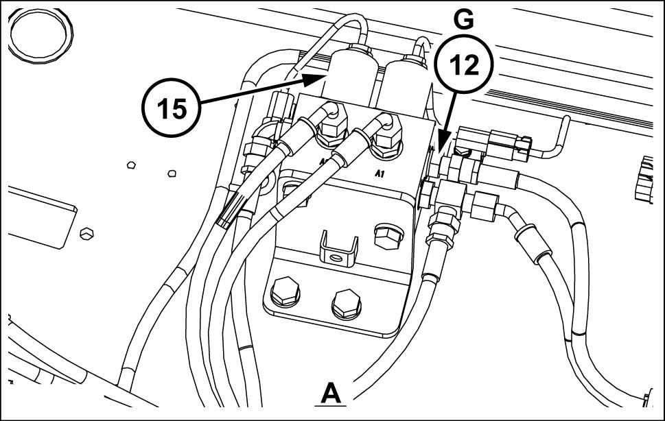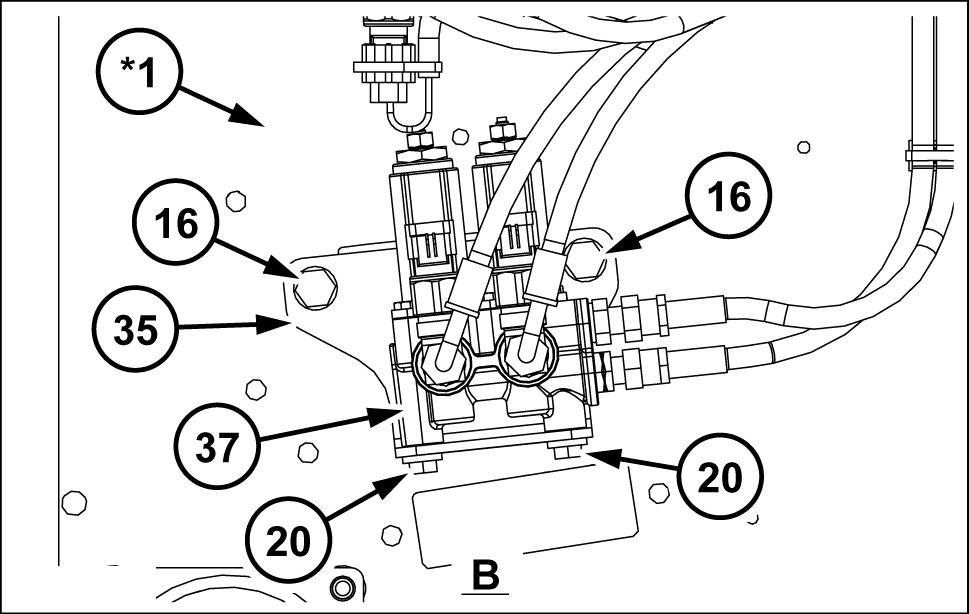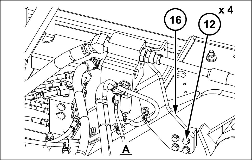 Instale válvula seguridad proporcional magnética (2) soporte (16) con los dos pernos SEMS (12)
