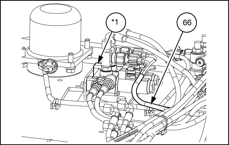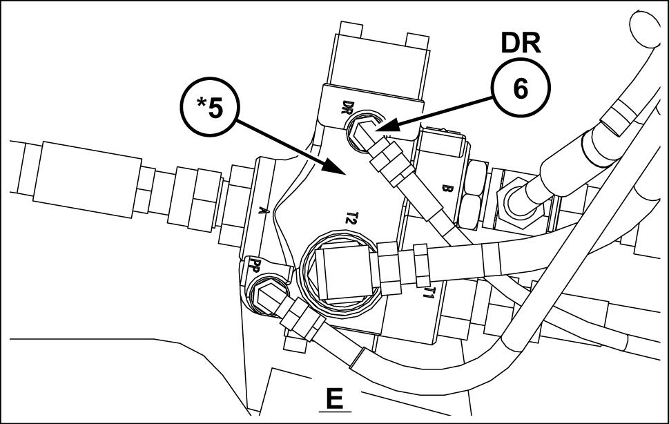 Instale codo (6) puerto válvula 3 direcciones (*5) .