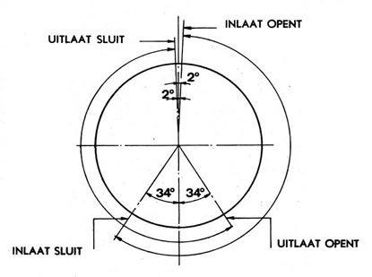 Het kleppendiagram. De vermelde waarden gelden bij een meetspeling van 1 mm aan de klep.