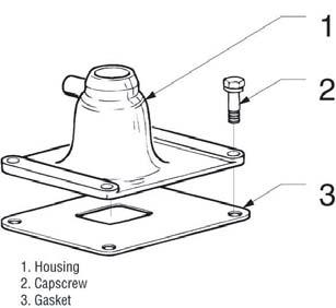 1. From the gear shift lever base/shift control housing, remove the four (4) retaining capscrews.