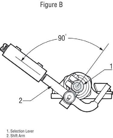 5. Turn the shift arm until it is at a right angle (90°) to the selection lever as viewed from the side (see figure B).
