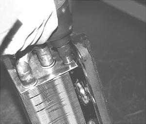 2. Install cooler to cover plate and tighten cooler fittings to 75 lb. ft. (102 Nm).