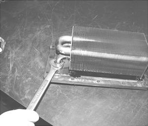 1. Thoroughly clean the gasket surface of the transmission case and cover plate. Be sure the cooler fitting threads and flare seat are free of dirt and debris.