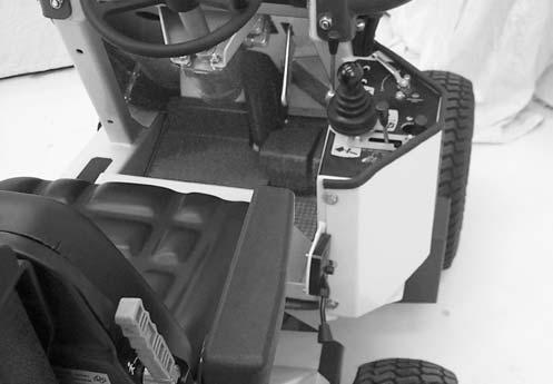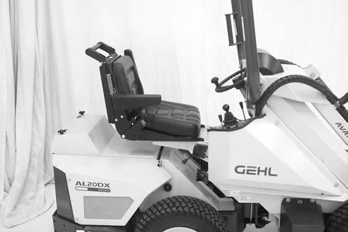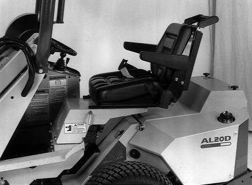 The loader seat is mounted on rails to provide forward or rearward repositioning, to adapt to the operator’s size and comfort. A spring-loaded latch handle is provided for activating the seat adjustment mechanism. Also provided are a seat belt, seat tilt and lumbar adjustments.