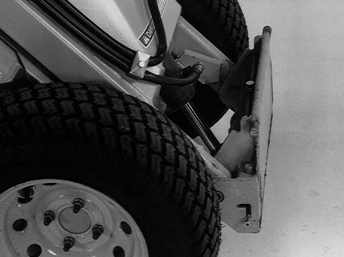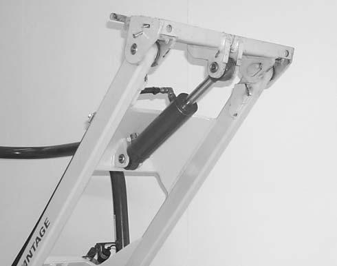6.Stop forward travel when the hooks are engaged but, continue to roll the attachment mechanism back to pick the attachment up off the ground. When the attachment mechanism is rolled back completely, exercise the MANDATORY SAFETY SHUTDOWN PROCEDURE (page 8)