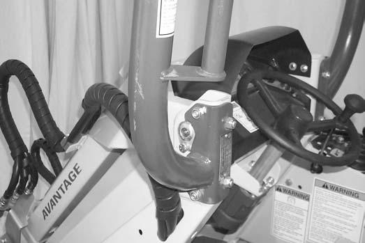 The rollover protective structure (ROPS) is designed to protect the operator if the loader is accidentally tipped over, provided the operator uses the seat belt. The ROPS is also equipped with a handhold to assist in operator’s compartment entry and exit.