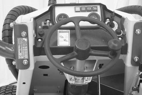When turning with the loader, BE SURE to maintain adequate side clearance, because the operator’s seat can extend beyond the turning radius of the wheels.