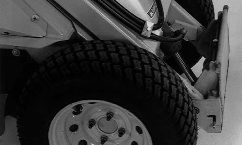 When turning with the loader, BE SURE to maintain adequate side clearance because the operator’s seat extends beyond the turning radius of the wheels.