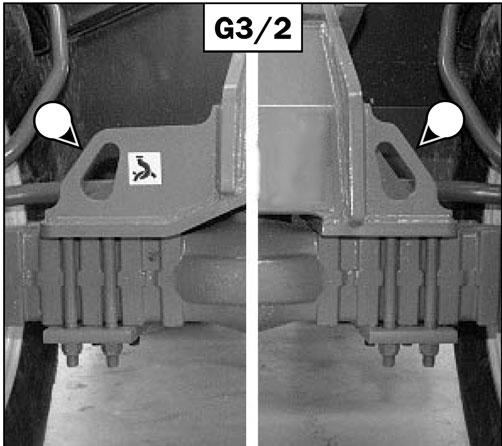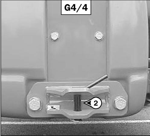 Tie down the telescopic handler on the trailer with chains and binders, at the front of the telescopic handler, at the tie-down points (1) (fig. 2/3), and at the back, at the tow pin (2) (fig. 2/4).