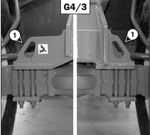 Take into account the position of the telescopic handler center-of-gravity for lifting (fig. 1/1).