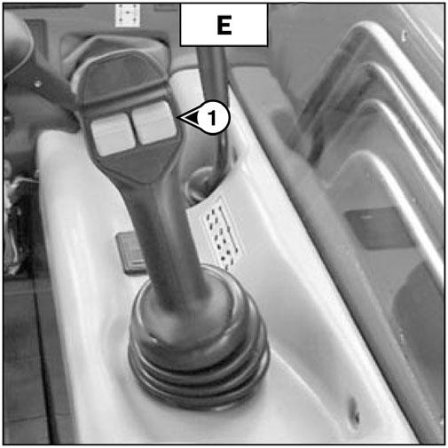 -Switch button (1) (fig. E) of the hydraulic control valve joystick down to release the attachment.