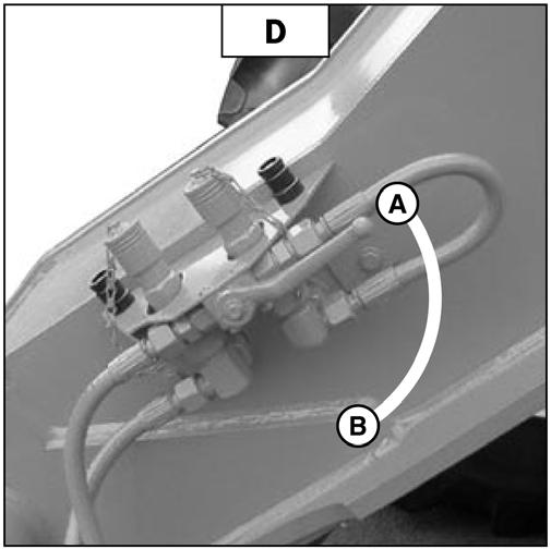 -Place the selector valve in position A(fig. D), with the hydraulic circuit for the attachment locked “open.”
