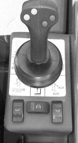B1 and B2 - Outrigger Option Switches: This option is used to provide greater stability for specific applications. Press the left “B1” switch for- ward to lower the left outrigger. Press the right “B2” switch forward to lower the right outrigger. To raise the outriggers, press both switches rearward.