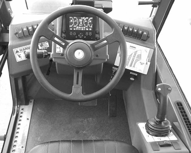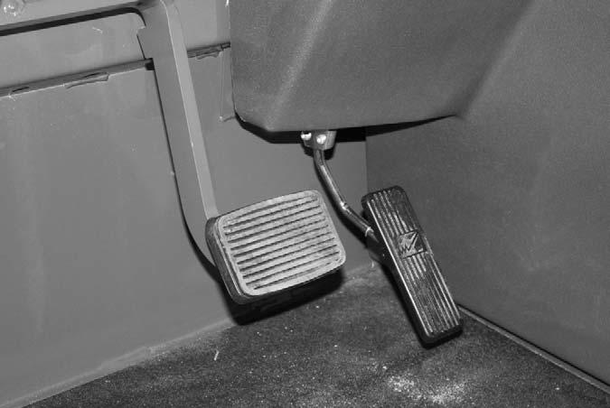 Throttle Pedal: This pedal, operated by the right foot, controls the engine speed to match power requirements. Pushing down on the pedal increases the RPM, letting up on the pedal decreases RPM.