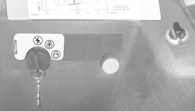 This switch must be pressed within 30 seconds to prevent undesired shutdown of engine. The switch can be overridden for 30 seconds at a time to move the machine to a safe location and to lower the boom to the ground. If the engine shuts down, the ignition switch must be turned off and then back on before the engine can be restarted.