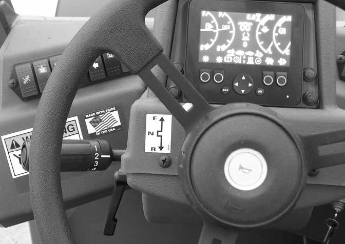 NOTE: Backup alarm automatically sounds with travel lever in Reverse.