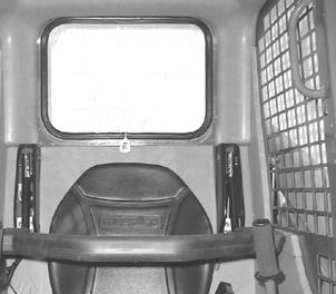 The ROPS/FOPS (Roll Over/Falling Object Protective Structure) is designed to provide protection for the operator from falling objects and in case the loader tips or rolls over, provided the operator is secured inside the ROPS by the seatbelt and restraint bar.