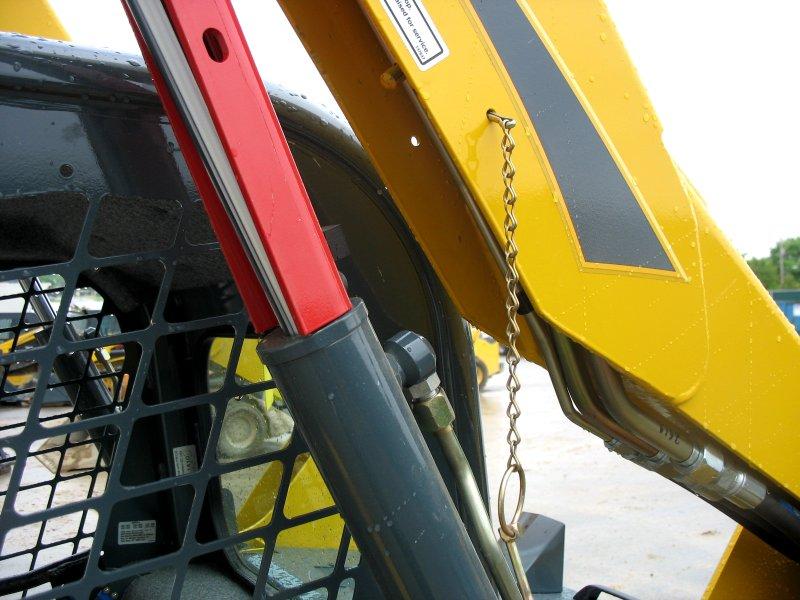Applying and disengaging the lift arm support requires two people – one person inside the machine and another person outside the machine to apply and/or disengage the support device.