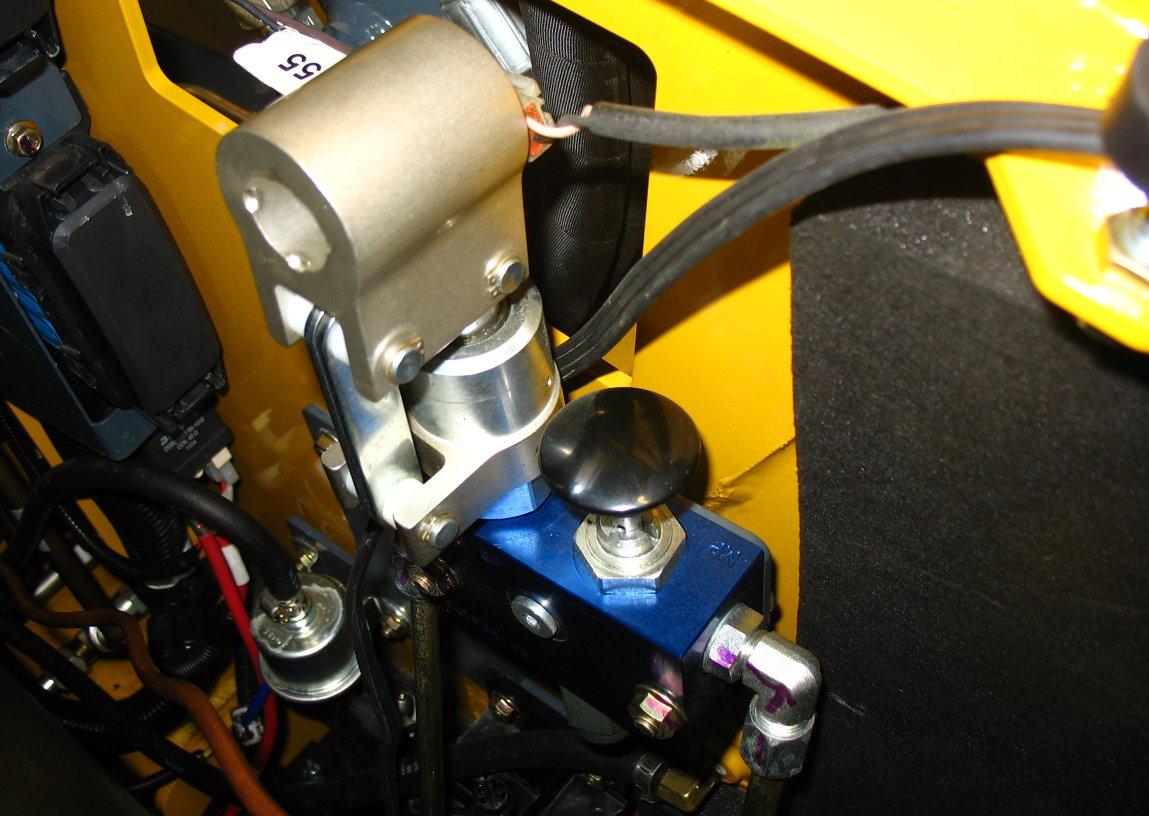 The machine may have, as an option, a brake release system installed. The brake release system releases the parking brake, allowing the machine to be towed for short distances.