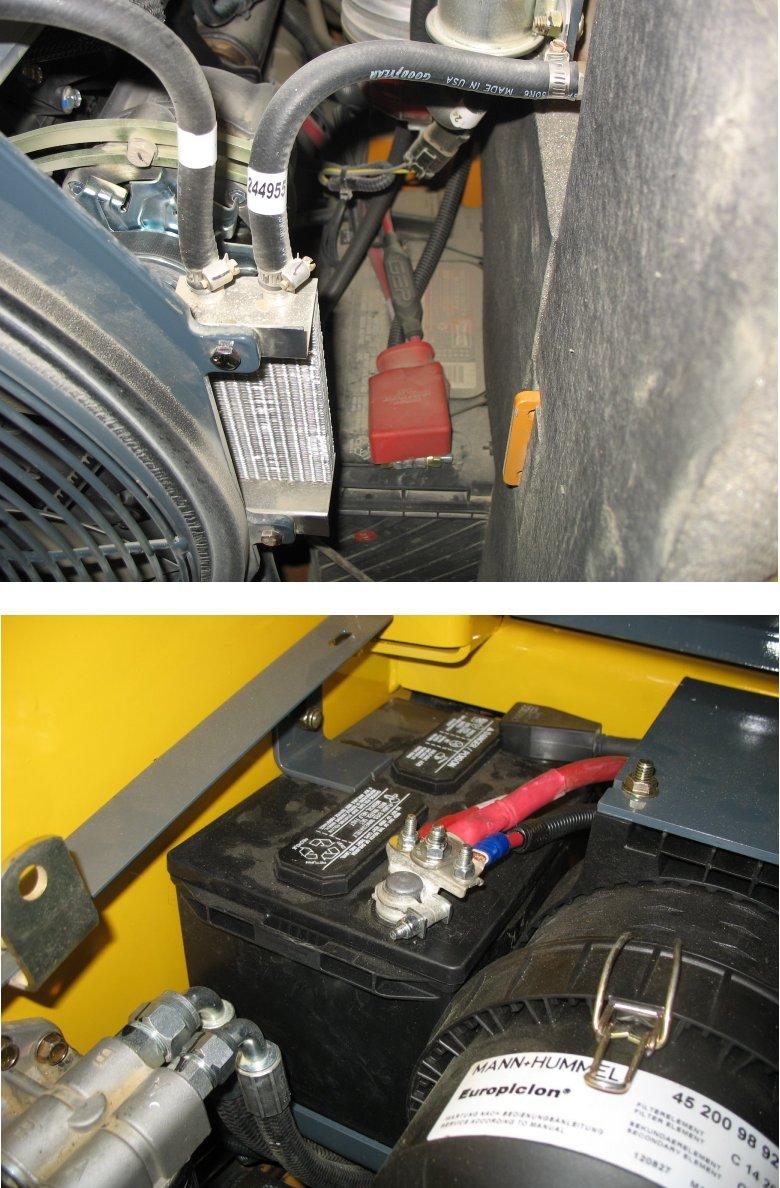 Note: Alternately, a third person can start the machine with the booster battery, to avoid excessive drain on the booster battery.