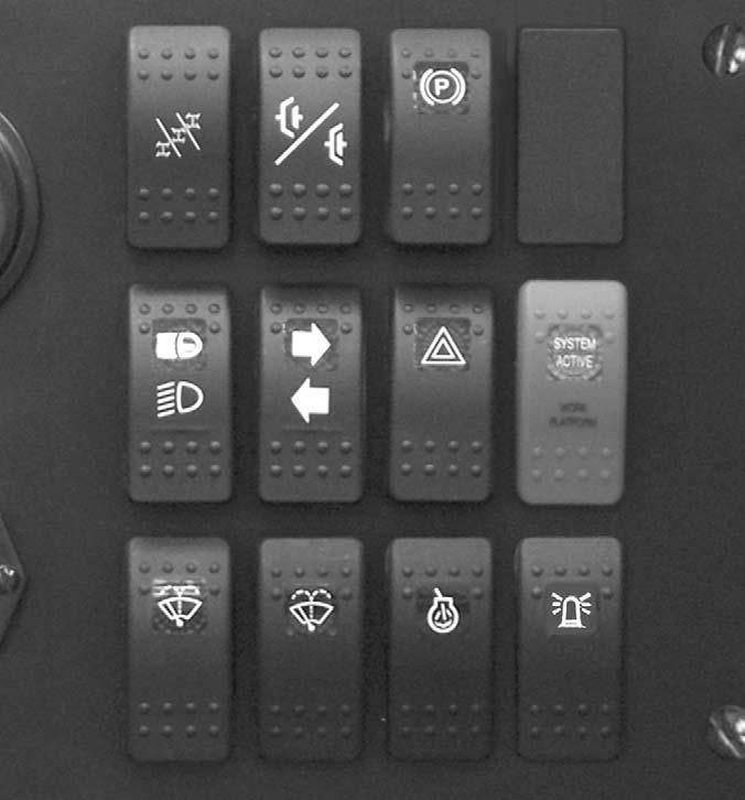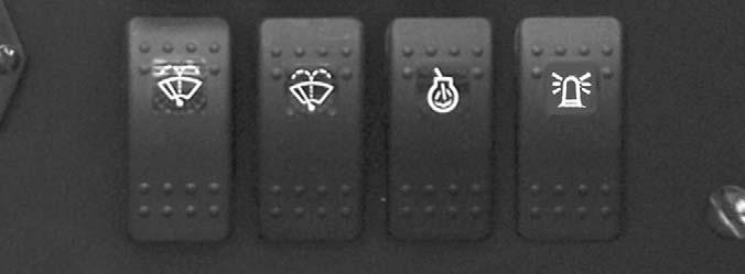 Switches have graphic symbols to indicate function and effect. The following descriptions start with the first switch on the left.