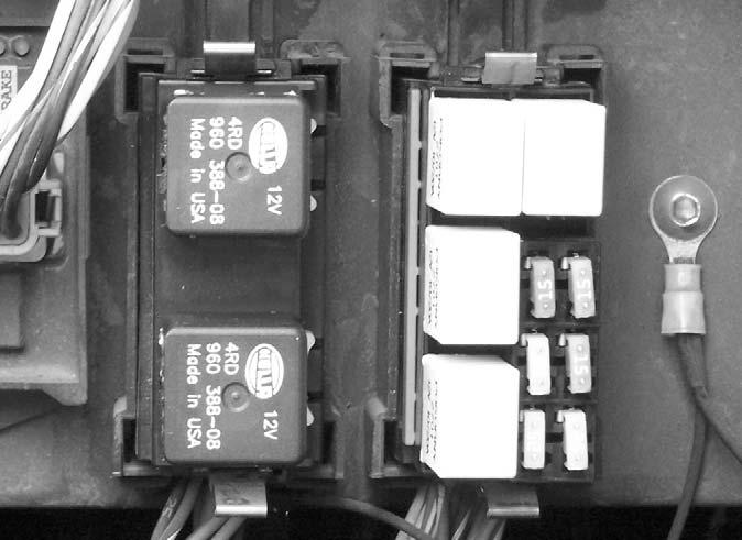 Fuse and Relay Access Compartment: This compartment is located under the load chart panel. Remove the four screws to gain access to the fuses and relays.
