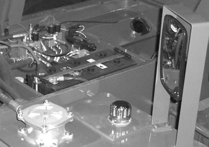 Hydraulic Reservoir Oil Level and Fill Cap: The dipstick on the fill cap of the reservoir indicates the level of the hydraulic oil in the reservoir.