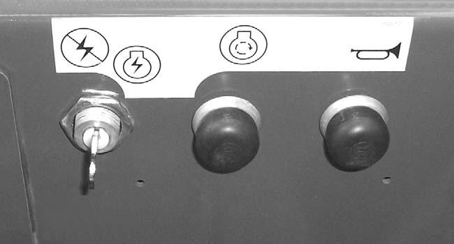 A1 - Key Switch OFF: When the key is vertical in the keyswitch, power is disconnected from the battery to the control and instrument panel electrical circuits. This is the only position in which the key can be inserted and removed.