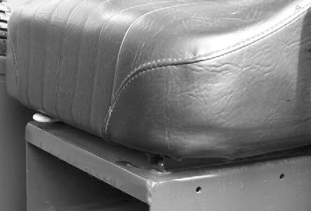 Seat Positioning: The seat is mounted on rails for forward and rearward repositioning, for comfort and to accommodate the operator’s size. A spring-loaded latch handle under the front of the seat actuates the adjustment mechanism.