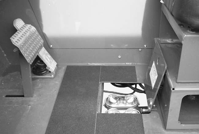Brake Fluid Reservoirs: Located under the hinged cover on the cab floor directly in front of the seat.