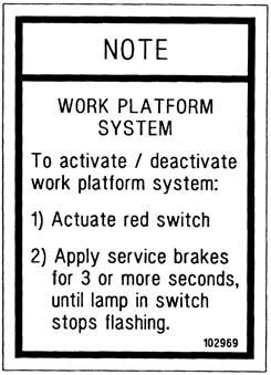 ALWAYS place the transmission in neutral, apply the parking brake and keep the service brakes fully applied before raising or extending the boom.