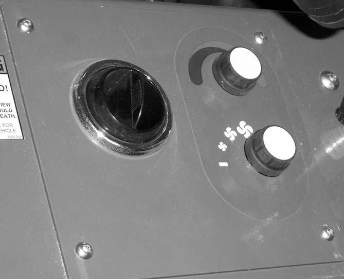 Temperature Control: This is the upper knob located to the left of the steering wheel. This knob is used to adjust the temperature output of the heater. Turning the knob clockwise will increase the temperature output of the cab heater.