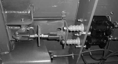 3.With the engine off, leave the operator’s station and manually raise the lock spring and flip the lock plate up and outward at least 180° so it is in position to re-lock onto the next attachment tool.