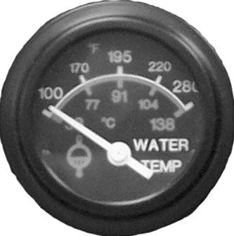 Coolant Temperature Gauge: The upper right gauge in the instrument panel, it indicates the temperature of the engine coolant. Under normal conditions, this gauge should indicate approximately 185°F (85°C).