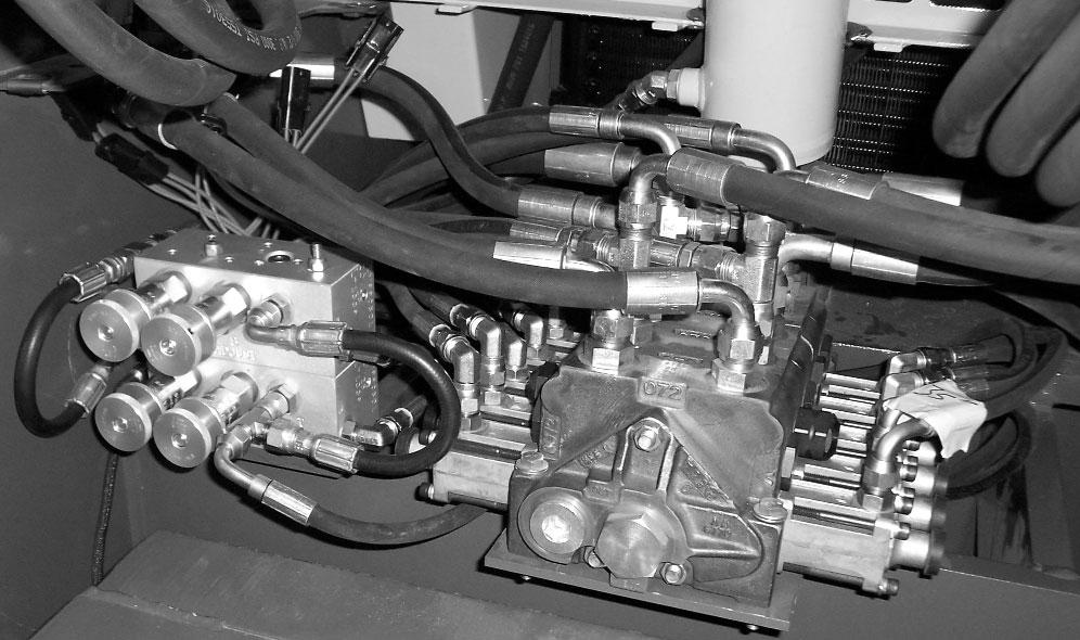 Hydraulic Pressure Test Ports: Agauge can be attached to these ports to check main valve, joystick and steering pressures.