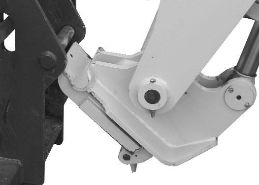 3.With the engine off, leave the operator’s station and manually raise the lock spring and flip the lock plate up and outward at least 180° so that it is in position to re-lock onto the next attachment tool.