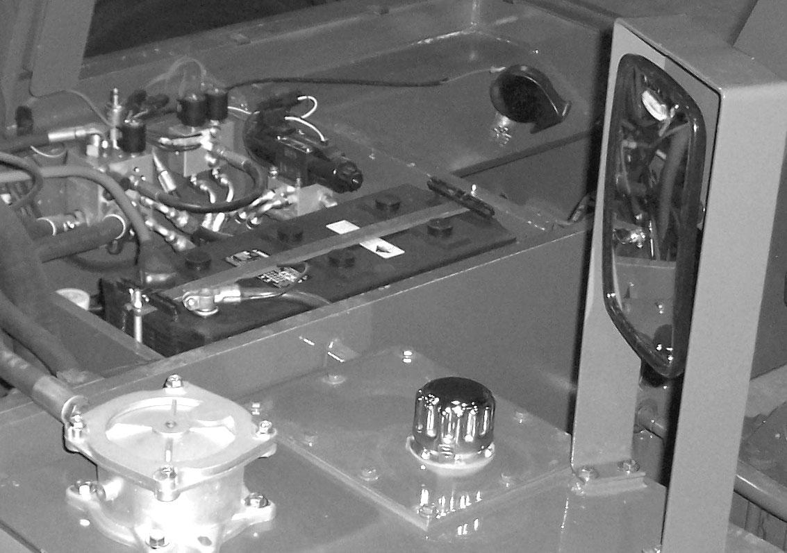 Battery Compartment: The battery is located under the access cover on the front hood section.