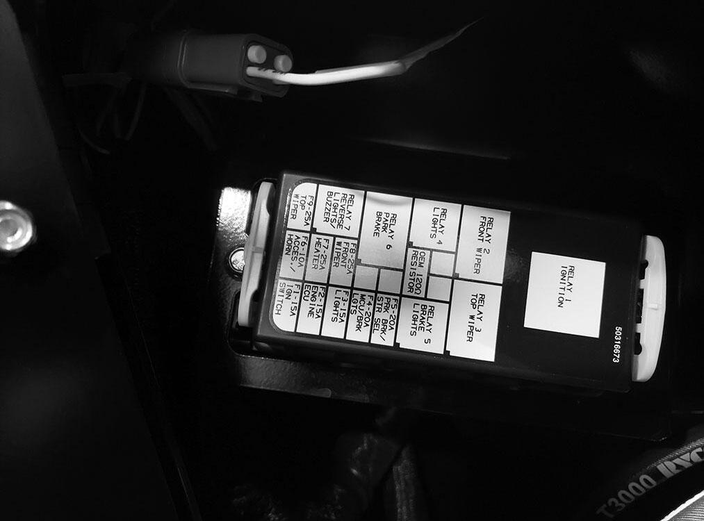 F4. 20 AMP fuse: MCU, Trans, Brake Lights, Backup Alarm.