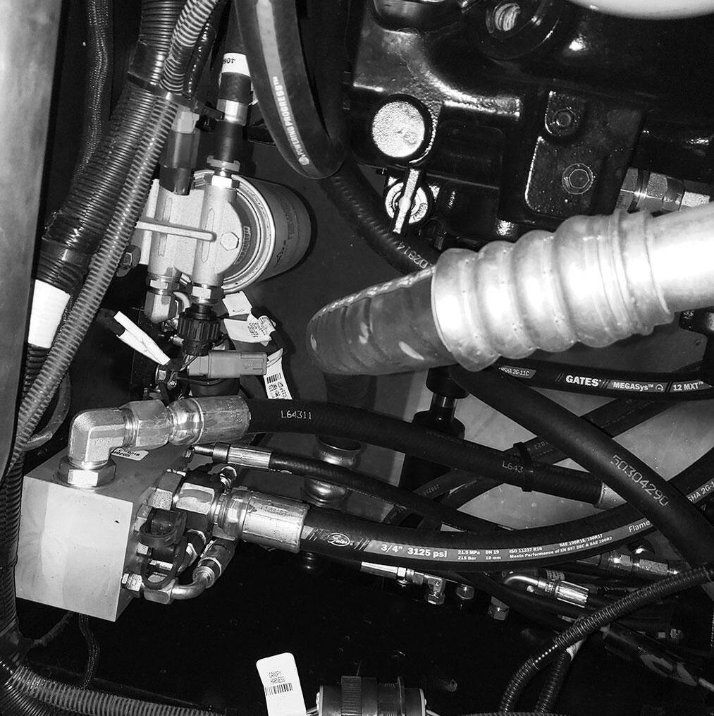 Hydraulic Pressure Test Ports: A gauge can be attached to these ports to check main hydraulic valve, joystick and steering pressures.