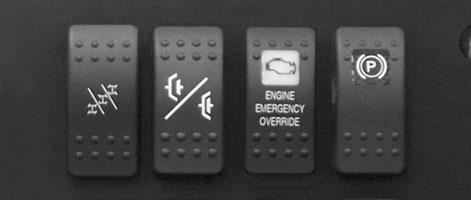 C - Engine Emergency Override Switch: Pressing and holding the bottom of the engine emergency override switch will override an ECU engine shutdown signal.