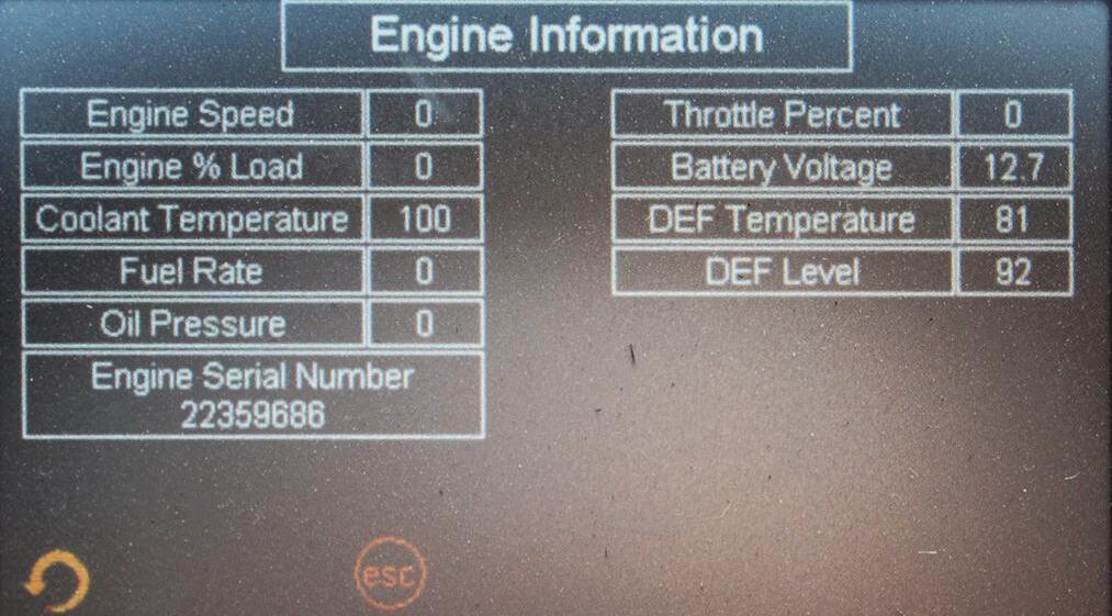Engine Information: Use the up and down scroll button to highlight the Engine Information function, then press the OK button. This screen will display various engine related information. Press the (A) back button to return to the main menu.