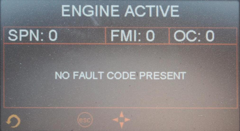 Press the left or right scroll button to switch the display to history or inactive fault codes. Press the (A) back button to return to the main menu.