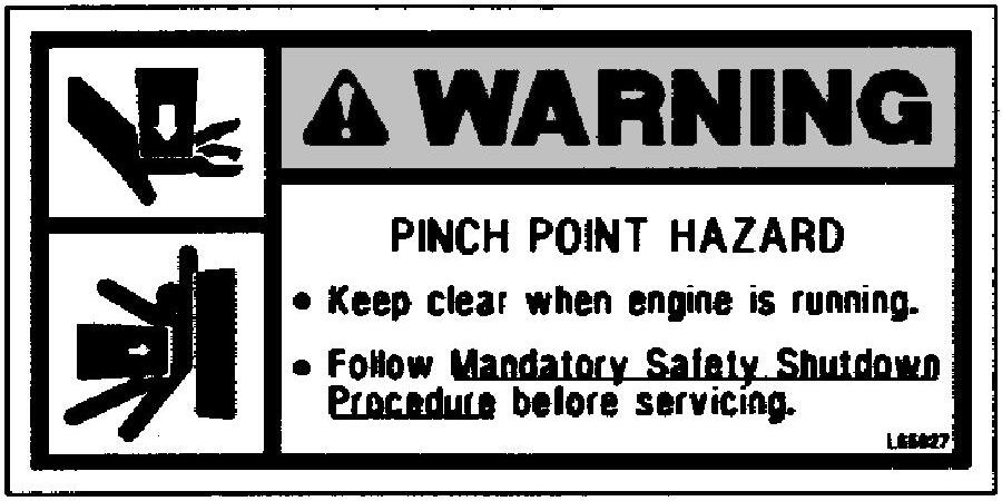 Whenever possible and without affecting machine operation, guards and shields are used to protect potentially hazardous areas. In many places, decals are also provided to warn of potential hazards and to display special operating procedures.