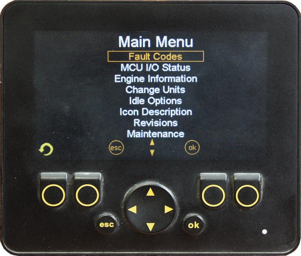 Fault Codes: Use the up or down scroll button to highlight the fault codes function, then press the OK button. Press the up or down scroll button again to scroll through any additional fault codes.
