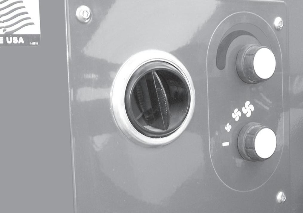 Fan Speed: This knob is located below the temperature control knob. Rotating the knob clockwise will increase the fan speed for increased air circulation.