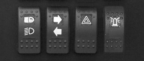 Switches have graphic symbols to indicate function and effect. The following descriptions start with the first switch on the left.