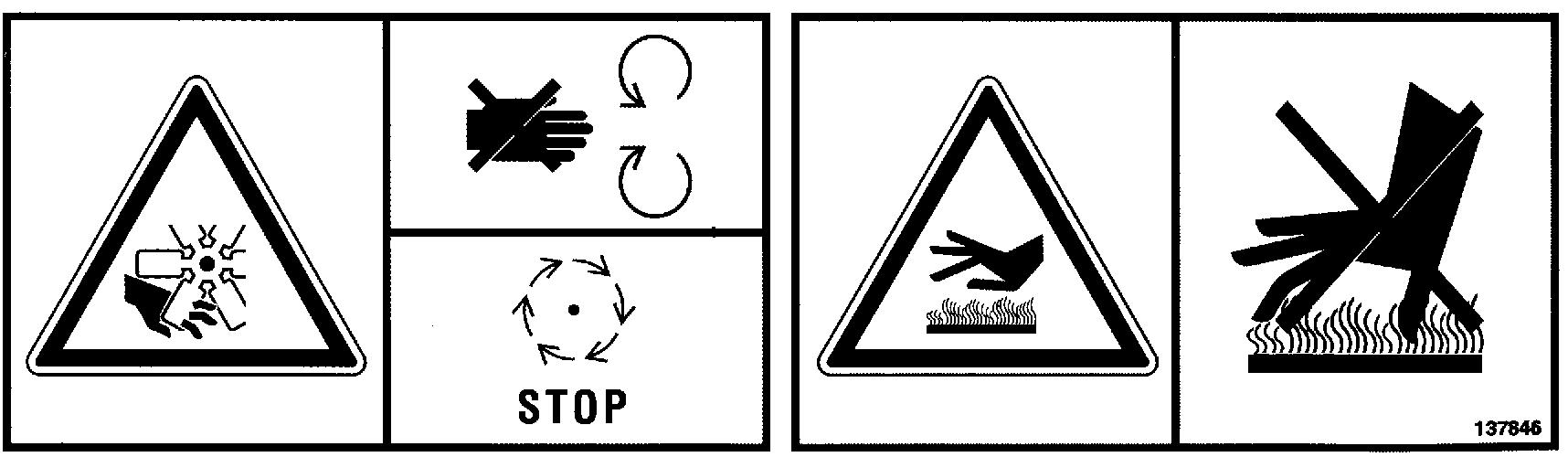B – Hot surface: Do not touch hot engine or hydraulic system parts.