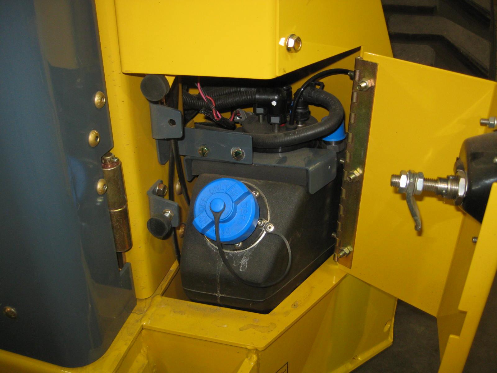 The DEF fluid reservoir filler is located behind a latched cover at the rear right side of the chassis.