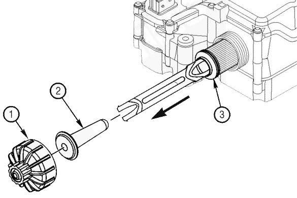 Note: A 27 mm wrench can be used on the cap to aid in its removal.